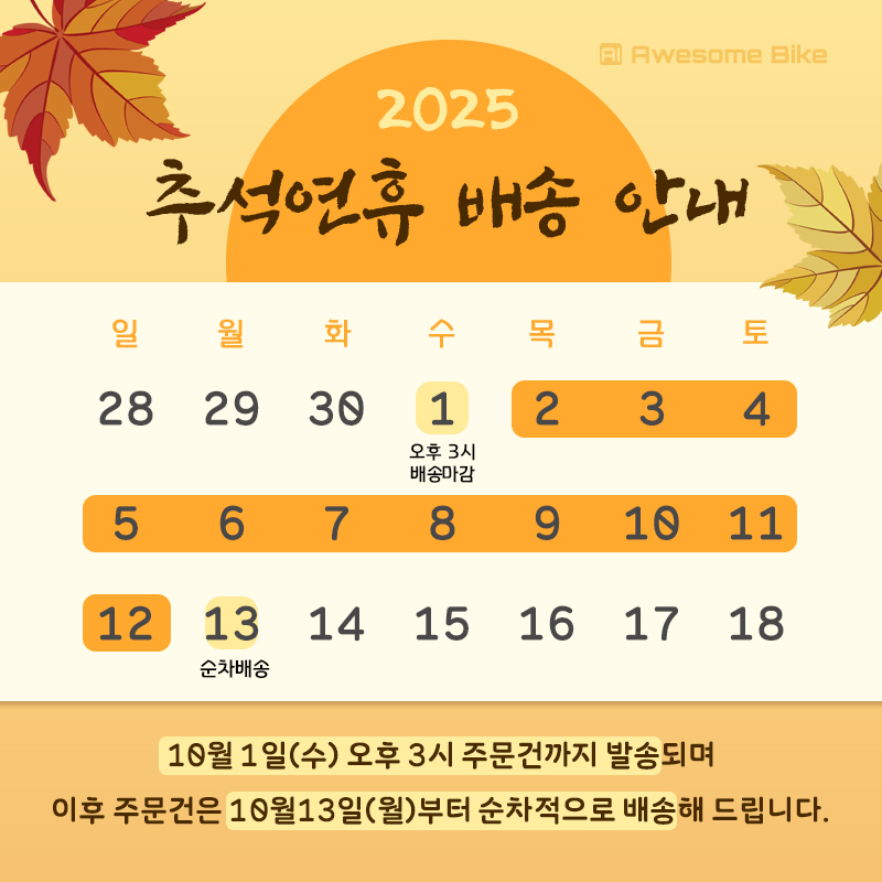 - 연휴 이후 출고 : 10월 13일(월)부터 순차 출고